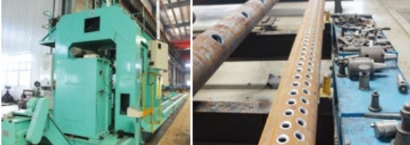 特點:用于鍋爐行業(yè)集箱管(電站鍋爐)的加工,使用專用組合刀具一次完成集箱管孔以及管孔上盆型坡口的加工,三個鉆削動力頭加工集箱,效率高。