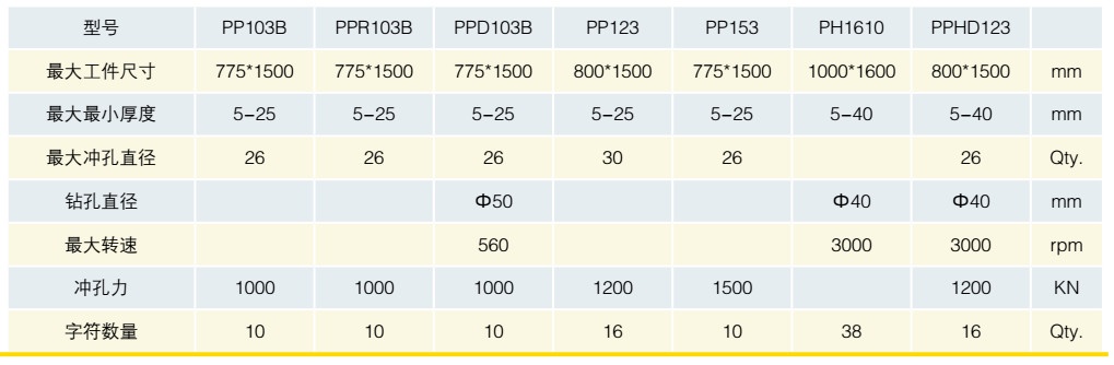 數(shù)控液壓沖孔、沖鉆復(fù)合機系列產(chǎn)品參數(shù)