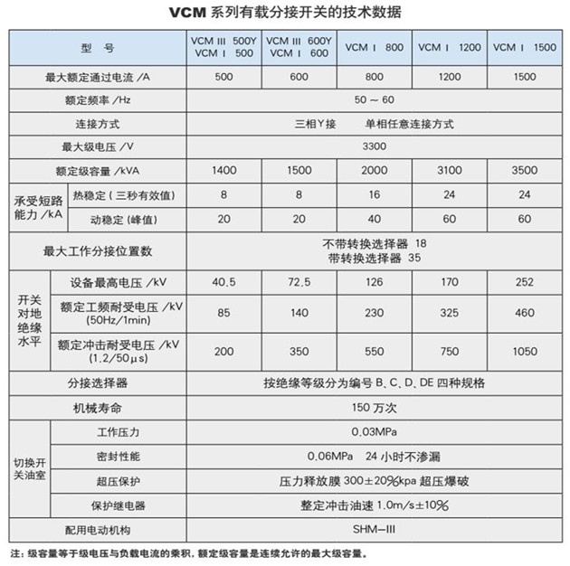 特點:VCM型真空有載分接開關(guān)是一種組合式有載分接開關(guān),其切換開關(guān)采用真空切換技術(shù),分接選擇器沿用了華明經(jīng)過不斷改進(jìn)提高的、并且經(jīng)過長期運(yùn)行驗證的可靠結(jié)構(gòu)。該分接開關(guān)適用于設(shè)備最高電壓40.5kV-252kV,最大額定通過電流三相600A,單相1500A,頻率50Hz和60Hz的電力變壓器或工業(yè)變壓器。三相有載分接開關(guān)用于Y接中性點調(diào)壓、單相有載分接開關(guān)則用于任意位置的調(diào)壓。